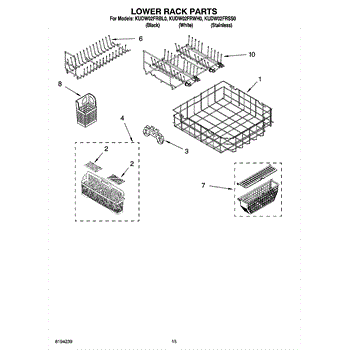 The Lower Dishrack is an OEM part for Whirlpool dishwashers. It provides space for arranging and securely holding your dishes during the dishwashing cycle.