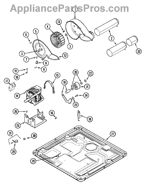 This genuine replacement part is a drive motor for dryers. The drive motor is the main engine that allows the dryer drum to rotate. If the drum is no longer spinning properly, the drive motor might need to be replaced. Luckily this is a relatively simple process.To replace the drive motor, begin by unplugging the dryer. Once it is powered off, uninstall the front panel of the dryer by removing the screws that attach it. After that, lift the top panel above the drum so that it is vertical and no longer covering the drum. Then disconnect the wires from the moisture sensors with a screwdriver by pressing down on the locking tab. Once the wires have been removed, lift the drum out from the dryer to gain access to the drive motor. Using a socket wrench, remove the blower wheel from the motor assembly. Then remove the old drive motor by unthreading the mounting screws that attach it. Install the new drive motor and reassemble the dryer. This OEM replacement part is sold individually and is compatible with Whirlpools, Maytag, Kitchenaid, Jenn-Air, Amana, Magic Chef, Admiral, Norge, Roper, and Sears/Kenmore brand dryers.
