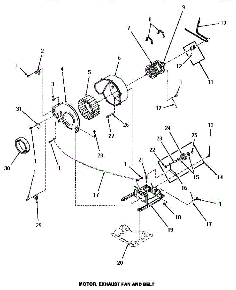 Parts for Amana HG2980: 12 - Motor, Exhaust Fan & Belt Parts