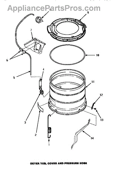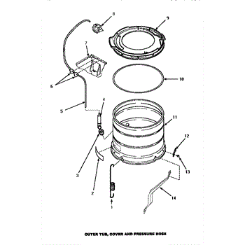 Parts for Amana AWM371W2: 12 - Outer Tub, Cover And Pressure Hose Parts