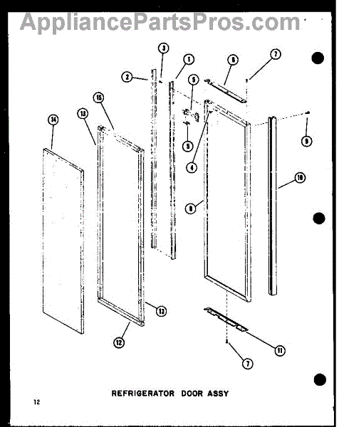 Parts for Amana SDI25D / P7390017W: 12 - Ref Door Assy Parts