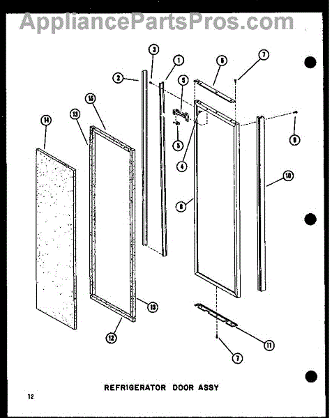 Parts for Amana SRI19W-C / P6035049W C: 12 - Ref Door Assy Parts