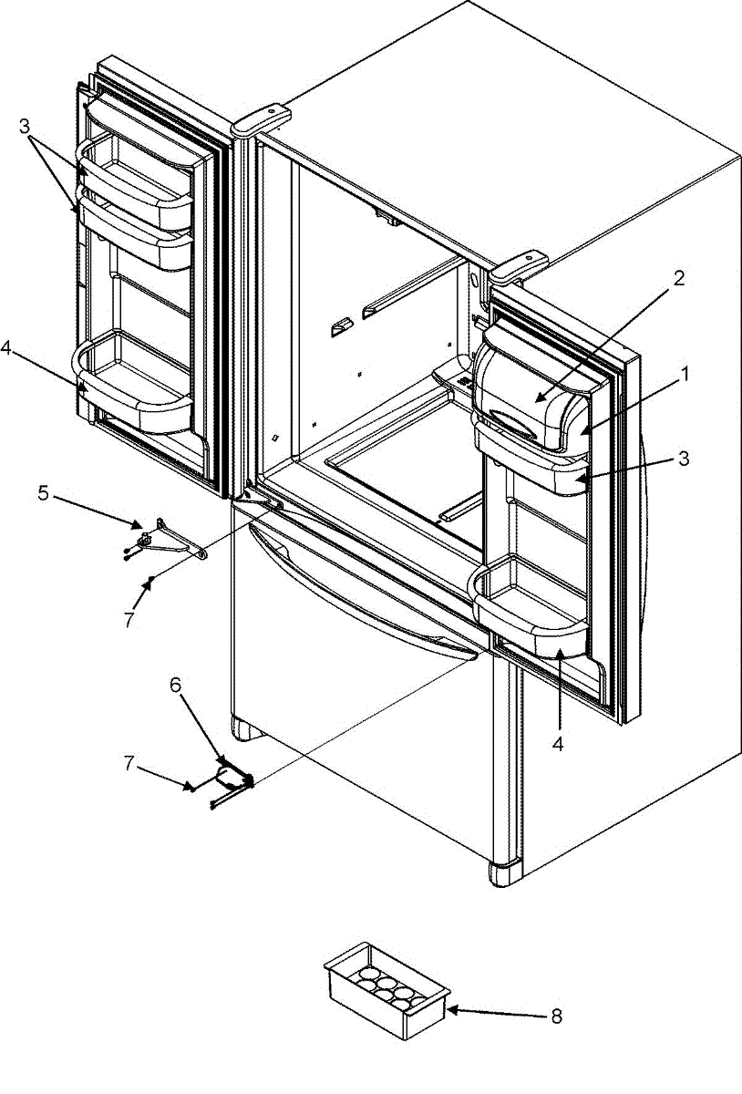 Center hinge for refrigerator doors. Replaces broken, cracked, or worn hinges that cause door misalignment or sagging. Essential structural component.