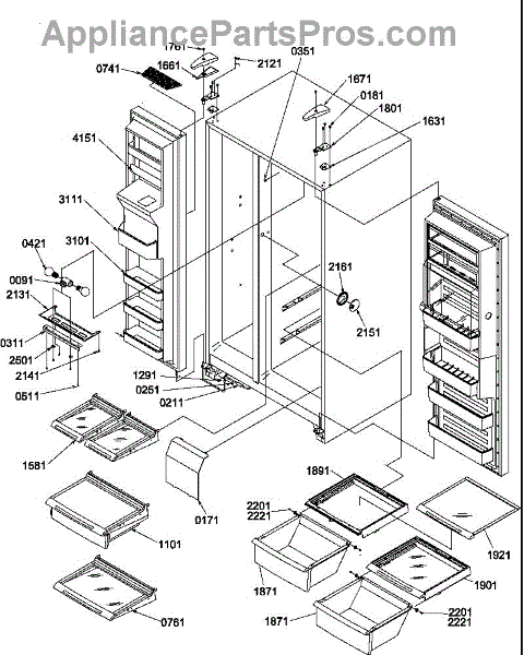 Parts for Amana SRD27S4E / P1190306W E: 12 - Ref / Fz Shelves, Lights, And Hinges Parts