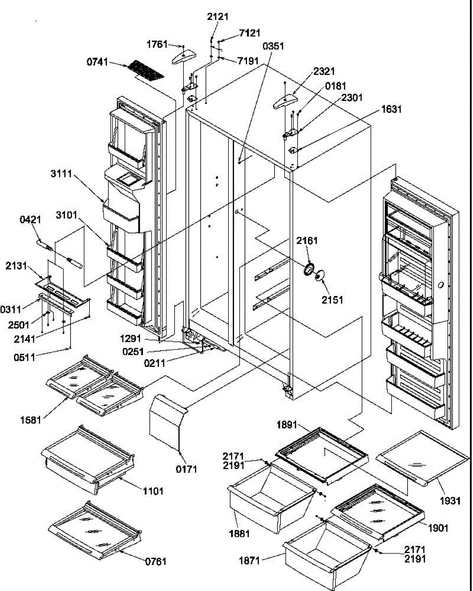 Parts for Amana SRD520SL / P1186302W L: 12 - Ref / Fz Shelves, Lights, And Hinges Parts