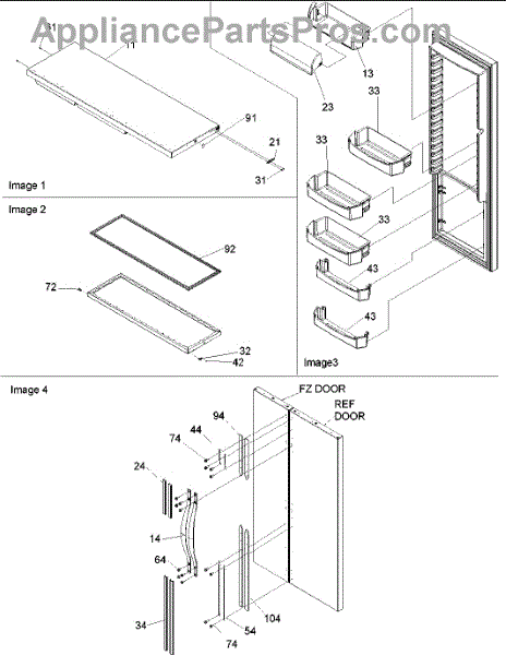 Cam kit for refrigerator door hinges. Includes black and white cams that install at door bottom and hinge. Replace when cracked, broken, or worn.