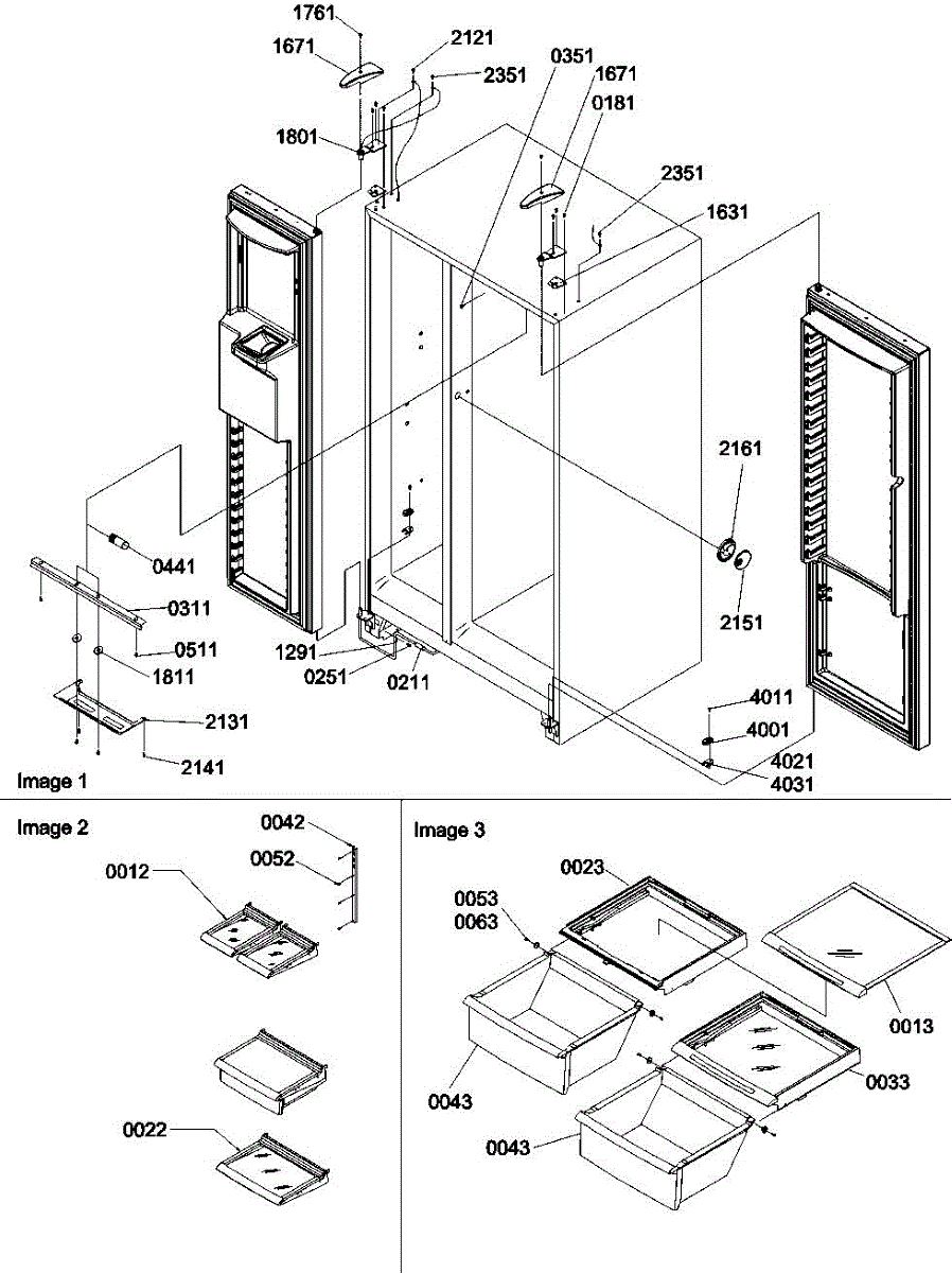 Cam kit for refrigerator door hinges. Includes black and white cams that install at door bottom and hinge. Replace when cracked, broken, or worn.