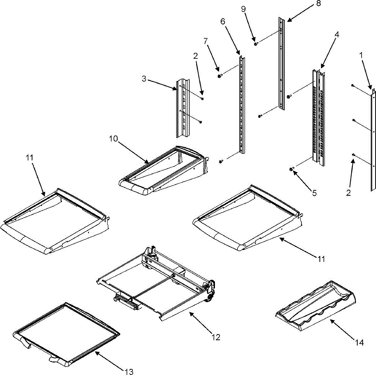 Causes of a bad glass shelf could be repeated cracking or chipping of glass over time due to the impact of falling items or bottle vibrations. Edge damage may occur from sliding shelving in and out of position.