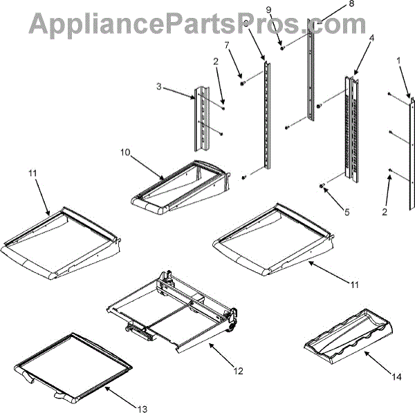 Causes of a bad glass shelf could be repeated cracking or chipping of glass over time due to the impact of falling items or bottle vibrations. Edge damage may occur from sliding shelving in and out of position.