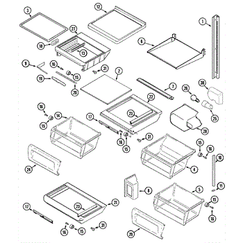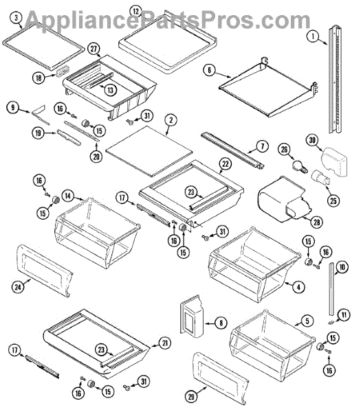 This crisper shelf support is the side-wall bracket that holds the glass shelf/cover above the produce drawers. Replacing a cracked support restores a level shelf and smooth crisper drawer operation.
