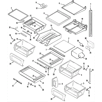 This crisper shelf support is the side-wall bracket that holds the glass shelf/cover above the produce drawers. Replacing a cracked support restores a level shelf and smooth crisper drawer operation.