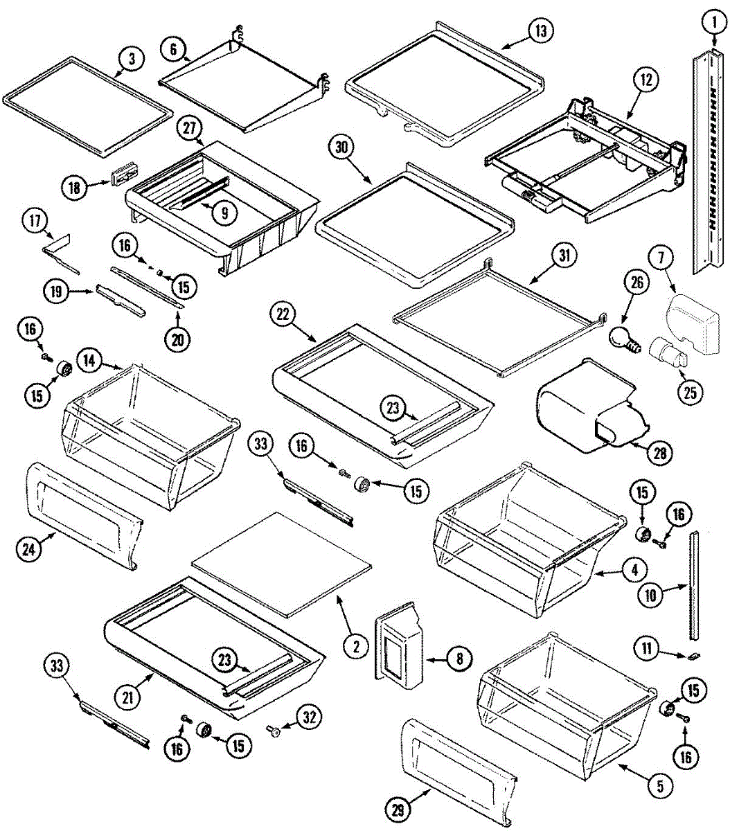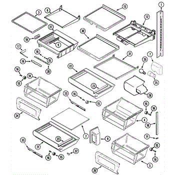 This crisper shelf support is the side-wall bracket that holds the glass shelf/cover above the produce drawers. Replacing a cracked support restores a level shelf and smooth crisper drawer operation.