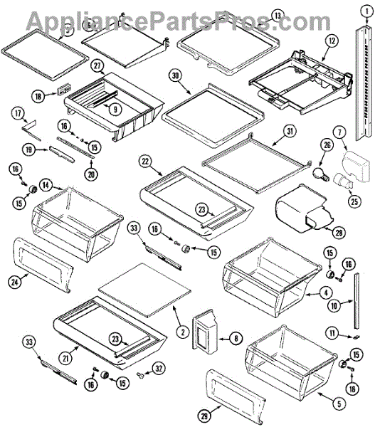 This crisper shelf support is the side-wall bracket that holds the glass shelf/cover above the produce drawers. Replacing a cracked support restores a level shelf and smooth crisper drawer operation.