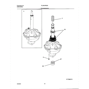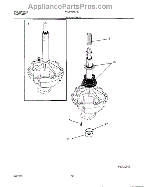 Oil leaking from agitator or poor spin performance? This washer transmission assembly restores wash and spin cycles. Advanced repair, 2-3 hours.