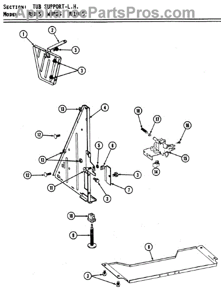 Parts for Maytag WU805: 12 - Tub Support (Left) Parts