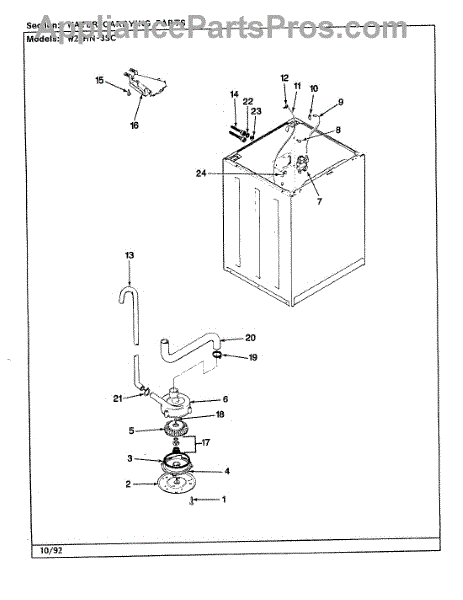 The Washer Tub to Pump Hose is an OEM part for Whirlpool washing machines. This hose connects the washer tub to the drain pump, facilitating the proper drainage of water from the tub during the wash and spin cycles.