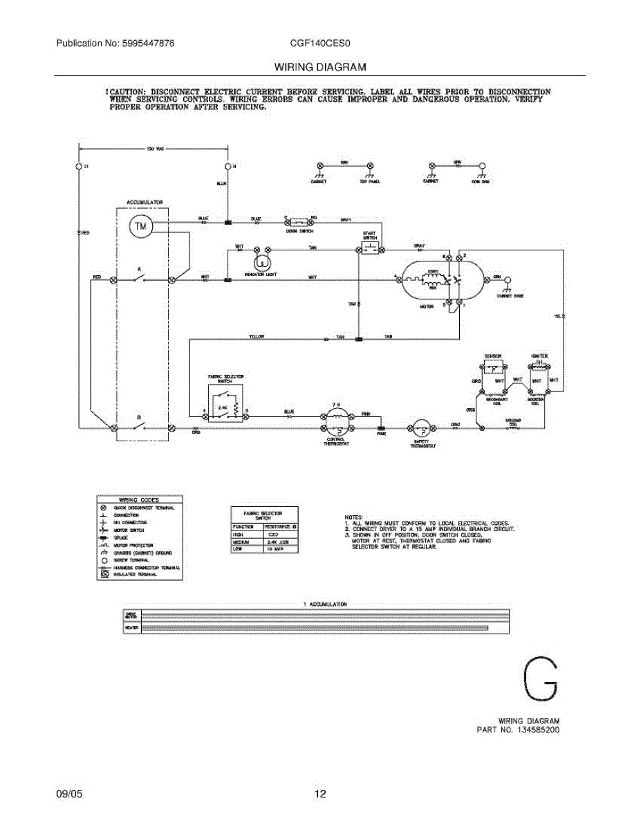 Parts for Frigidaire CGF140CES0: 12 - Wiring Diagram Parts