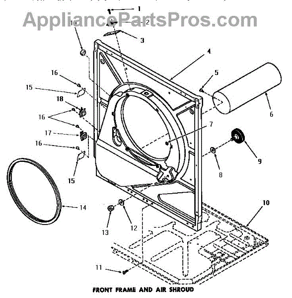 Parts for Amana DE9021: 13 - Front Frame & Air Shroud Parts