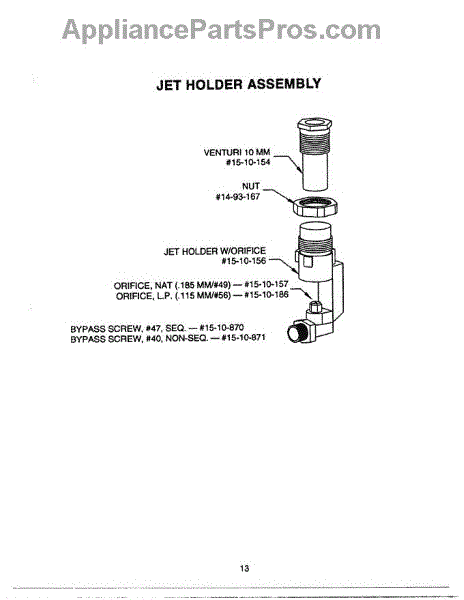 Parts for Thermador GPS484WKS: 13 - Jet Holder Assembly Parts