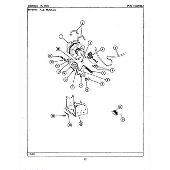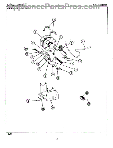 This is the main drive motor that powers the appliance's drive system. A failing motor can cause the unit to stop agitating or spinning, run intermittently, hum without movement, or trip the overload.