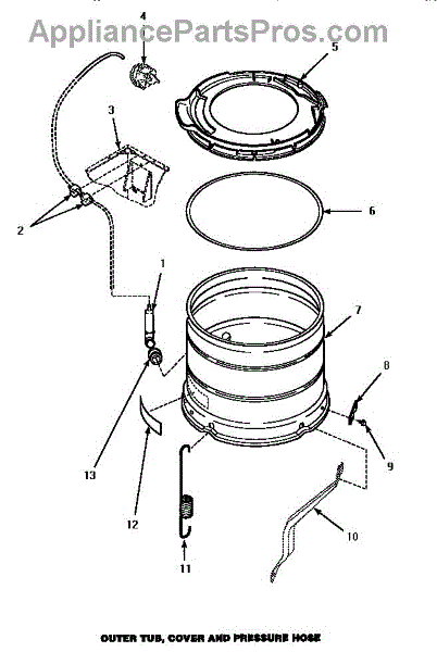 Parts for Amana CW4202L / PCW4202L: 13 - Outer Tub, Cover & Pressure Hose Parts