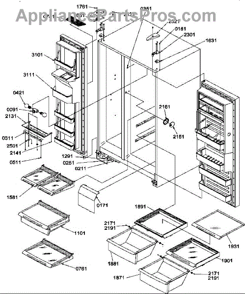 Parts for Amana SRD20TPE / P1190811W E: 13 - Ref / Fz Shelves, Lights, And Hinges Parts