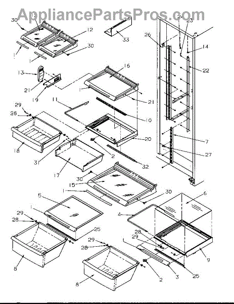 Parts for Amana SRD325S5W / P1199401W W: 13 - Ref Shelving And Drawers Parts