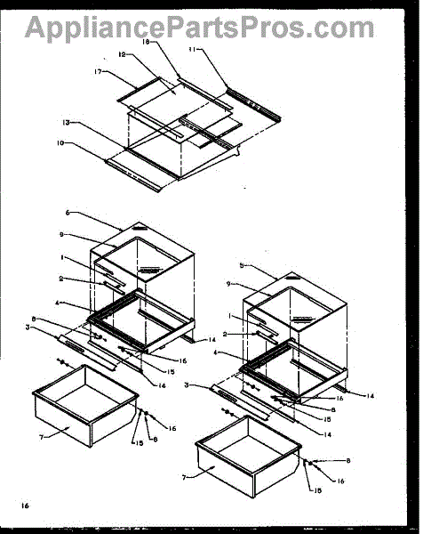 Parts for Amana SZI20NW / P1162901W W: 13 - Ref Shelving And Drawers Parts