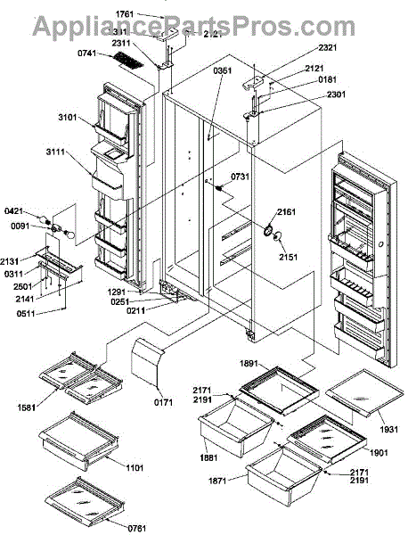 Parts for Amana SBDE20TPE / P1190904W E: 13 - Refrig / Fz Shelves, Lights, & Hinges Parts