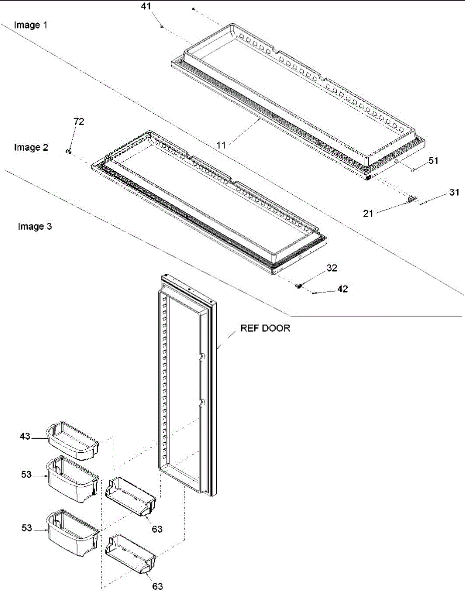 This gallon sized fresh food door bin may come in white or clear depending on what the manufacturer provides at the time. This bin measures about 17 inches wide by 4 inches high by 8 inches deep.