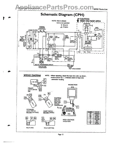 Parts for Thermador SMW272W: 13 - Schematic / Wiring Diagrams Parts