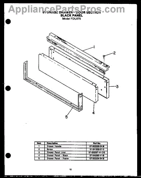 Parts for Amana FDU275: 13 - Storage Drawer-Door Section Black Panel Parts