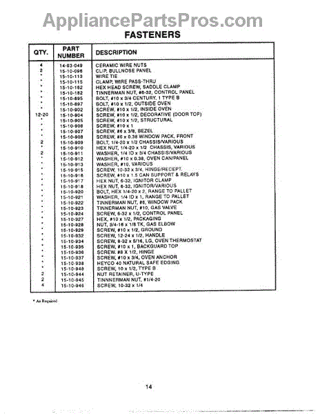 Parts for Thermador PRDS304: 14 - Fasteners Parts