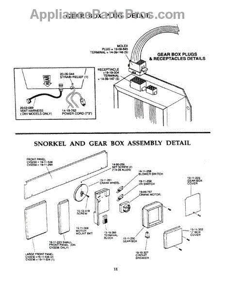 Parts for Thermador GGSCV30W: 14 - Gear Box Plug, Snorkel & Gear Box Parts