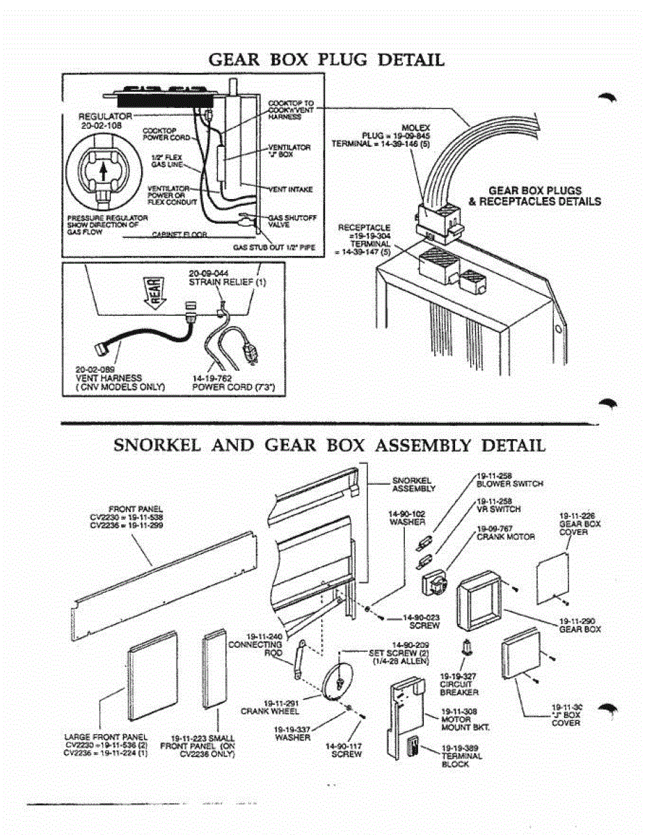 Parts for Thermador SGS36GB: 14 - Gear Box Plug, Snorkel & Gear Box Parts