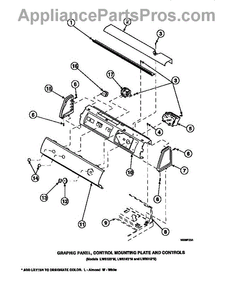 Parts for Amana LW6143WM / PLW6143WM A: 14 - Graphic Panel, Ctrl Mtg Plate And Ctrls Parts