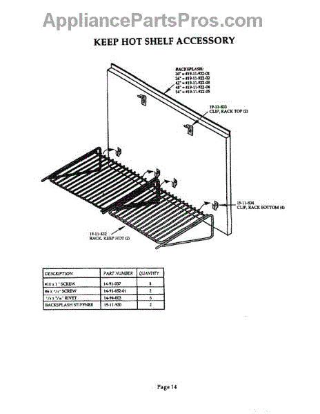 Parts for Thermador H36HQS: 14 - Keep Hot Shelf Accessory Parts