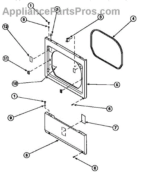The Door Catch Kit is an OEM part for Whirlpool dryers. It includes the door catch and the necessary mounting hardware to secure it in place. This kit ensures the dryer door remains securely closed during operation, preventing heat loss and ensuring the appliance functions efficiently.