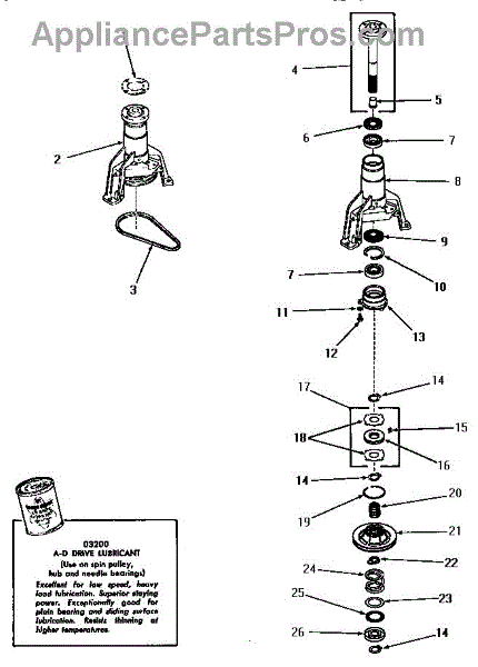 Parts for Amana DA6200: 14 - Main Bearing Assy Parts