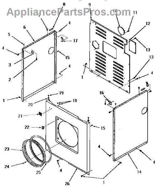 This 12-14 x 1/2 screw is a factory fastener used to secure appliance panels, brackets, and components. Replacing a missing or stripped screw restores a tight fit, reduces rattling, and keeps parts properly aligned for reliable operation.