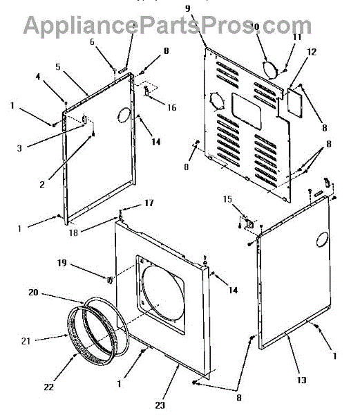 This 12-14 x 1/2 screw is a factory fastener used to secure appliance panels, brackets, and components. Replacing a missing or stripped screw restores a tight fit, reduces rattling, and keeps parts properly aligned for reliable operation.