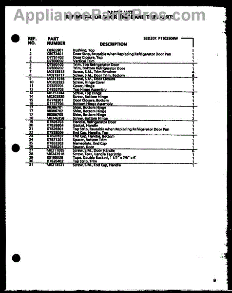 A single replacement screw used to fasten appliance panels and components, restoring secure fit and reducing vibration or noise. Simple, low-cost part for repairs that need a missing or stripped fastener. What it does:
