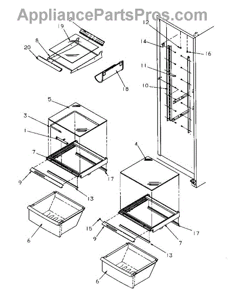 Parts for Amana 1999A / P1193906W L: 14 - Ref Shelving And Drawers Parts