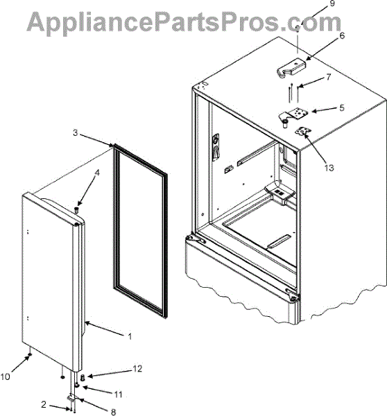 The Door Closure is an OEM replacement part for Whirlpool refrigerators. It is a small component that the door rides on that allows it to open and close properly. Causes of impaired operation involve age-related spring coil fatigue, dislodged or cracked plastic housing pieces, or confined door alignment stripping closure grooves. Symptoms of a faulty closure include: