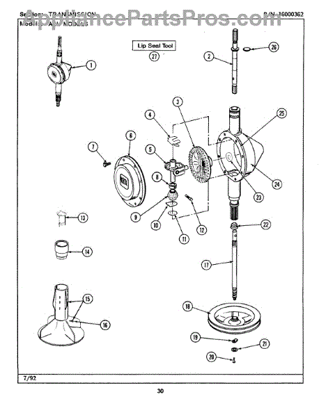 The Transmission Lower Lip Seal is an OEM part for Whirlpool washing machines. This seal plays a crucial role in preventing water leakage from the transmission area of the washing machine.