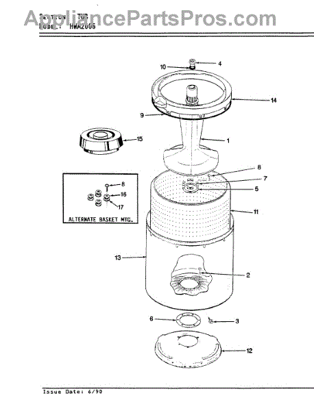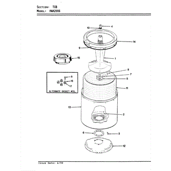 Parts for Hoover HWA2006W: 14 - Tub (Rev. E-F) Parts