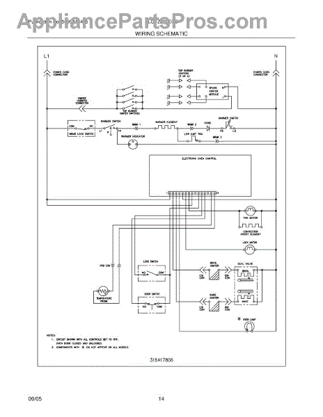Parts for Frigidaire PLGFZ390ECB: 14 - Wiring Schematic Parts
