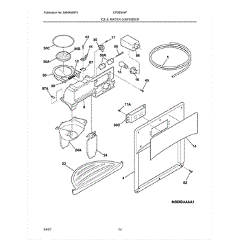 The Ice Chute Door Insulation is an OEM replacement part for Frigidaire refrigerators. It is installed on the ice chute door to prevent warm air infiltration and moisture buildup around the ice dispenser. Causes may include compression or cracking of insulating foam/material from normal use stress. Spills exposing it to liquid are also damaging. Symptoms of defective insulation consist of:
