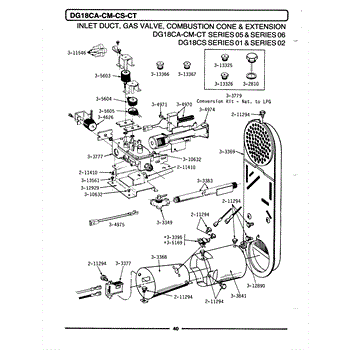 Parts for Maytag GDG18CT: 15 - Inlet Duct, Gas Valve, Cone & Extension Parts