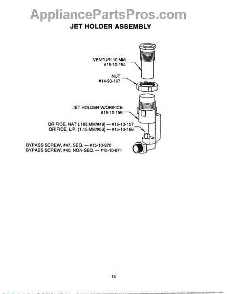 Parts for Thermador PRDS304: 15 - Jet Holder Assembly Parts